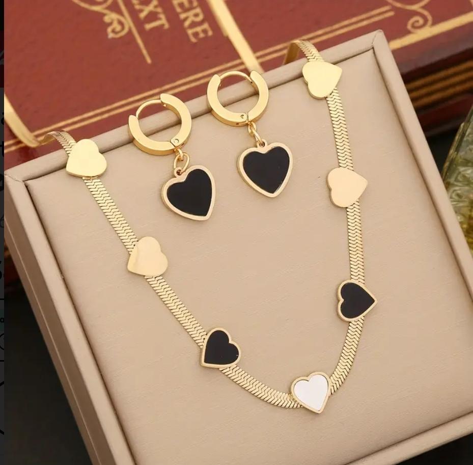 Black & Gold Earring + Necklace Set