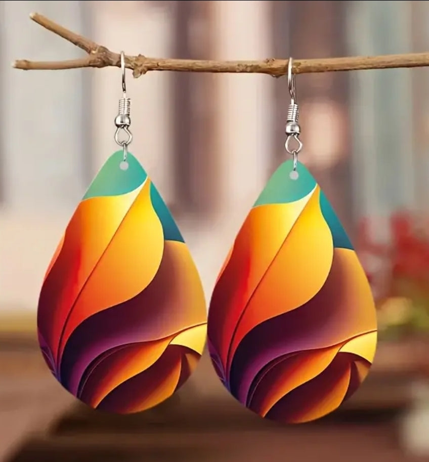 BOHEMIAN WOODEN WATER DROP EARRINGS