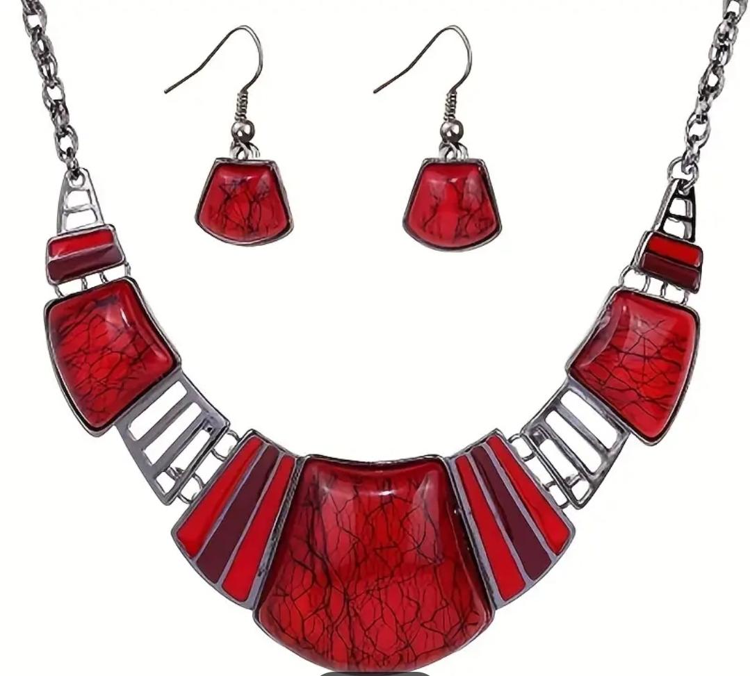 Unique design: Boho style imitation stone resin oil dropping necklace and earrings set will make you stand out from the crowd.