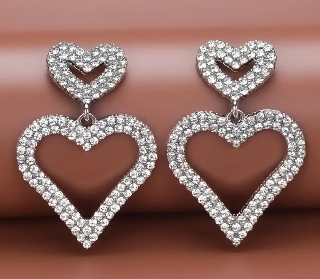 Double Hollow Heart Design Full Shiny Rhinestone earring