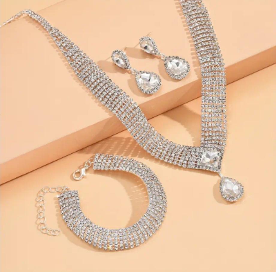 Earrings + Necklace + Bracelet Elegant Jewelry Set