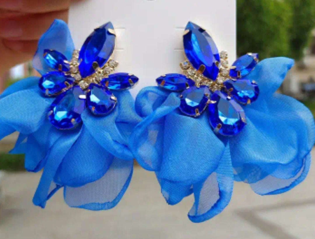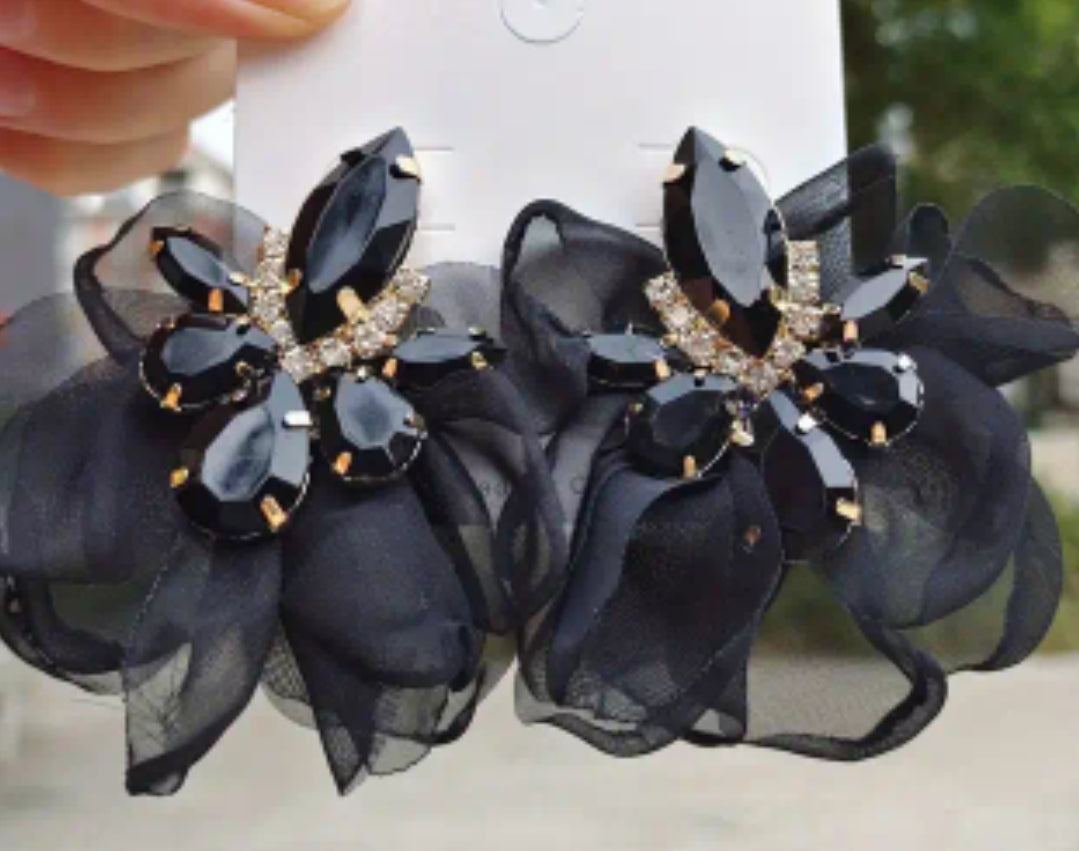 Exquisite Fabric Flower Shiny Zircon Decor Dangle Earrings