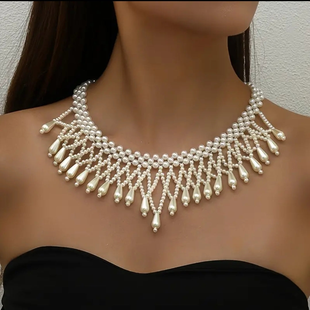 Gorgeous Banquet Braided Tassel Pearl Necklace