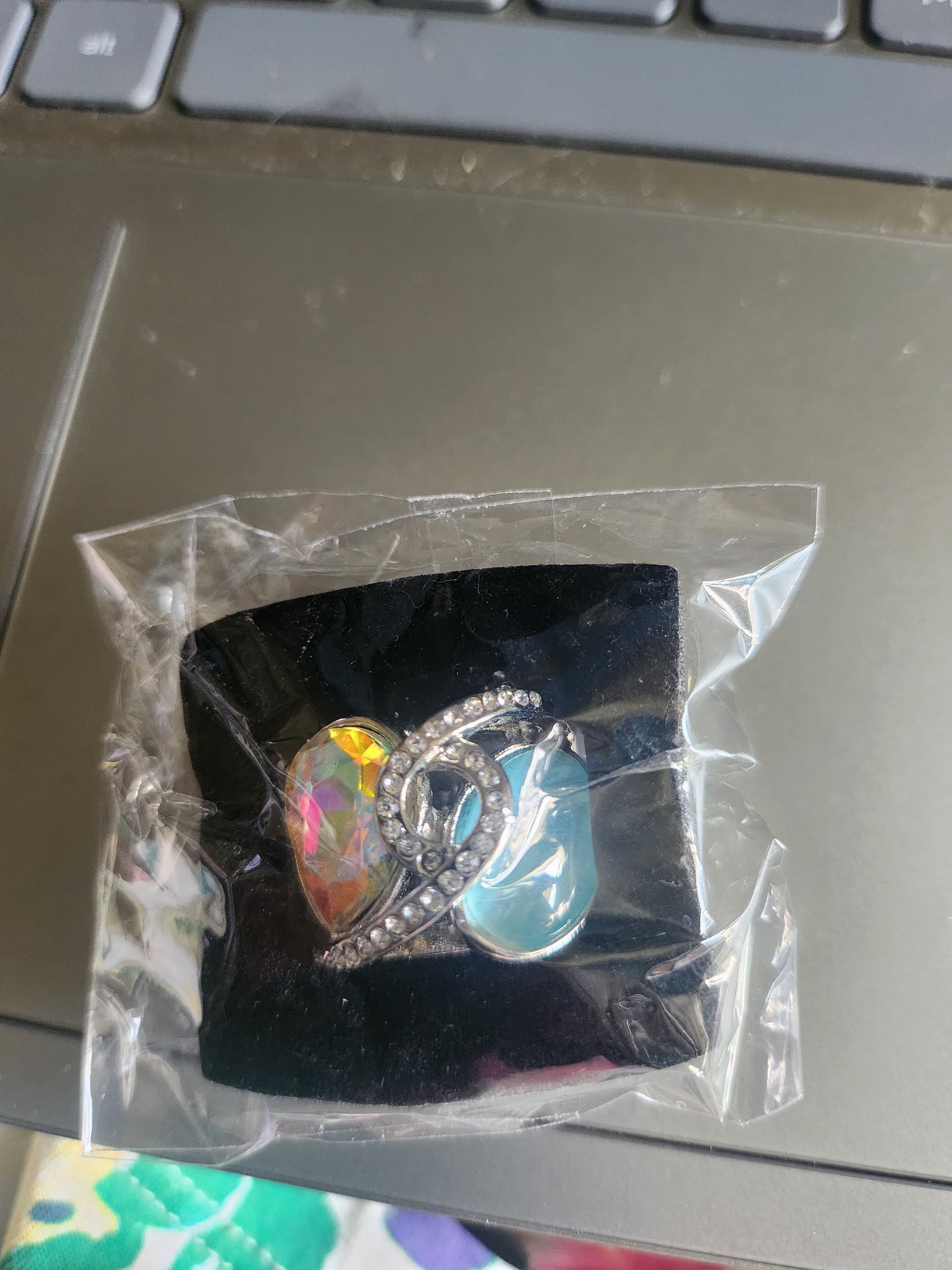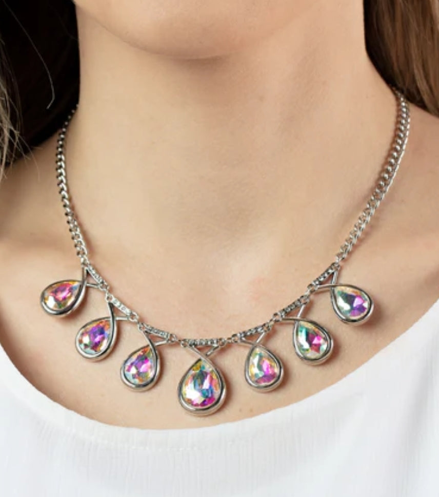 Iridescent necklace + ring