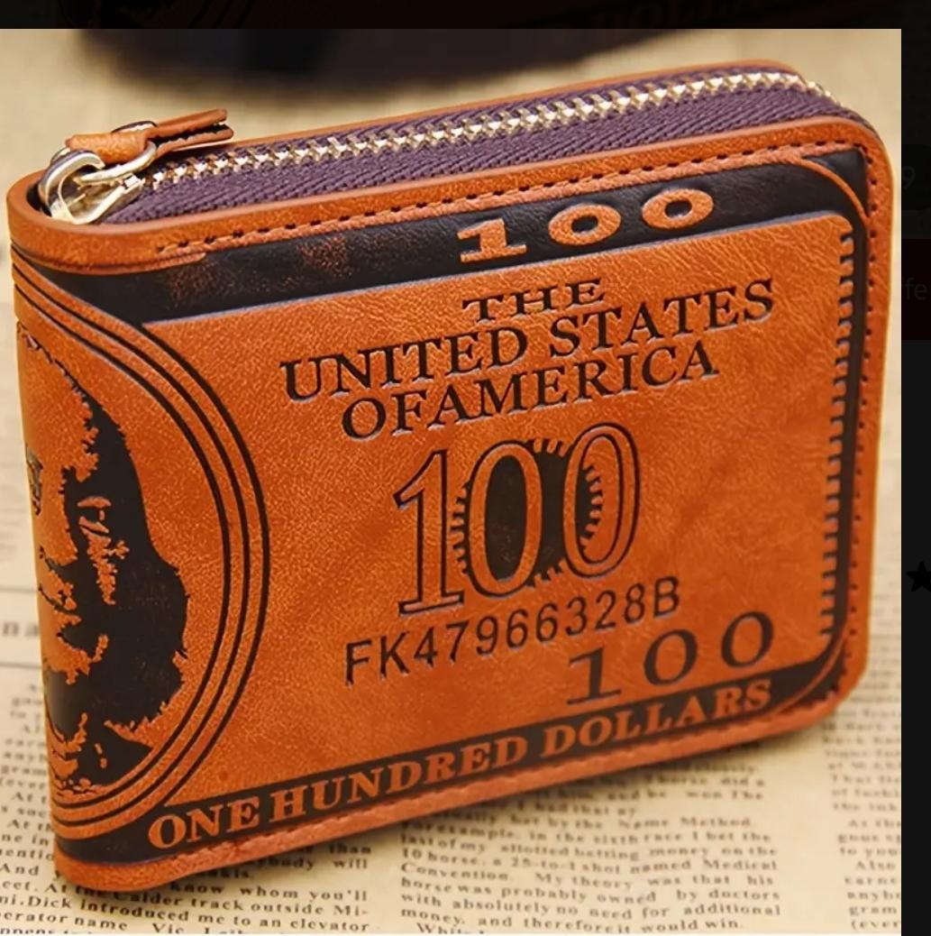 Men's Dollar Bill Wallet, Vintage Black Brown Leather Credit Card Photo Holder Coin Purse