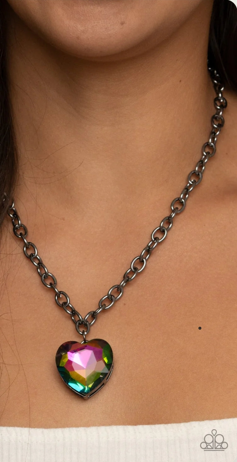 Oil spill heart necklace and ring